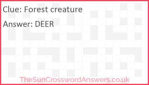 Forest creature is a crossword clue for which we have 2 possible answer and we have spotted 6 times in our database. This crossword clue was last seen on 11 December 2024 in The Sun Coffee Time Crossword puzzle!