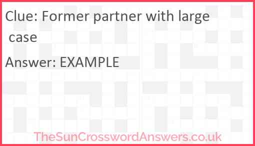 Former partner with large case is a crossword clue for which we have 1 possible answer and we have spotted 4 times in our database. This crossword clue was last seen on 25 February 2025 in The Sun Cryptic Crossword puzzle!
