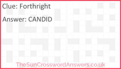 Forthright is a crossword clue for which we have 3 possible answer and we have spotted 8 times in our database. This crossword clue was last seen on 05 February 2024 in The Sun Coffee Time Crossword puzzle!