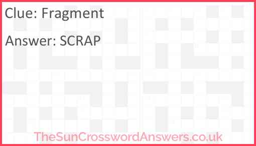 Fragment is a crossword clue for which we have 3 possible answer and we have spotted 15 times in our database. This crossword clue was last seen on 29 July 2025 in The Sun Coffee Time Crossword puzzle!