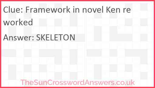 Framework in novel Ken reworked is a crossword clue for which we have 1 possible answer and we have spotted 1 times in our database. This crossword clue was last seen on 11 December 2021 in The Sun Cryptic Crossword puzzle!