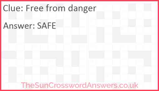 Free from danger is a crossword clue for which we have 1 possible answer and we have spotted 4 times in our database. This crossword clue was last seen on 10 September 2024 in The Sun Coffee Time Crossword puzzle!