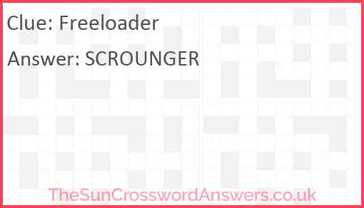 Freeloader is a crossword clue for which we have 1 possible answer and we have spotted 2 times in our database. This crossword clue was last seen on 22 May 2024 in The Sun Coffee Time Crossword puzzle!