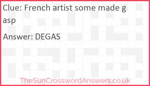 French artist some made gasp is a crossword clue for which we have 1 possible answer and we have spotted 1 times in our database. This crossword clue was last seen on 16 June 2020 in The Sun Cryptic Crossword puzzle!