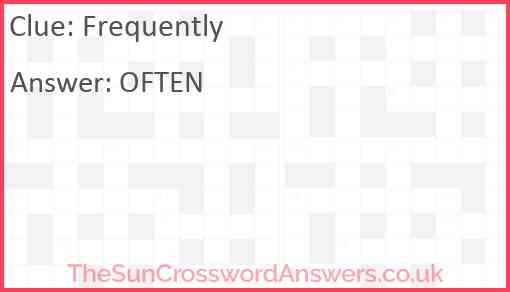 Frequently is a crossword clue for which we have 1 possible answer and we have spotted 6 times in our database. This crossword clue was last seen on 20 November 2023 in The Sun Coffee Time Crossword puzzle!