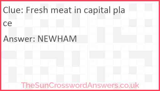 Fresh meat in capital place is a crossword clue for which we have 1 possible answer and we have spotted 1 times in our database. This crossword clue was last seen on 09 June 2022 in The Sun Cryptic Crossword puzzle!