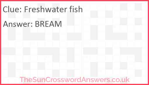 Freshwater fish is a crossword clue for which we have 2 possible answer and we have spotted 2 times in our database. This crossword clue was last seen on 27 February 2022 in The Sun Coffee Time Crossword puzzle!