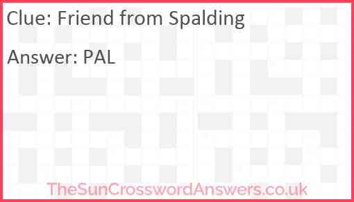 Friend from Spalding is a crossword clue for which we have 1 possible answer and we have spotted 3 times in our database. This crossword clue was last seen on 22 June 2024 in The Sun Cryptic Crossword puzzle!