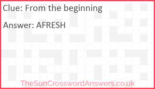 From the beginning is a crossword clue for which we have 1 possible answer and we have spotted 2 times in our database. This crossword clue was last seen on 14 August 2024 in The Sun Coffee Time Crossword puzzle!