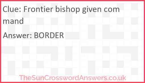 Frontier bishop given command is a crossword clue for which we have 1 possible answer and we have spotted 3 times in our database. This crossword clue was last seen on 07 August 2023 in The Sun Cryptic Crossword puzzle!