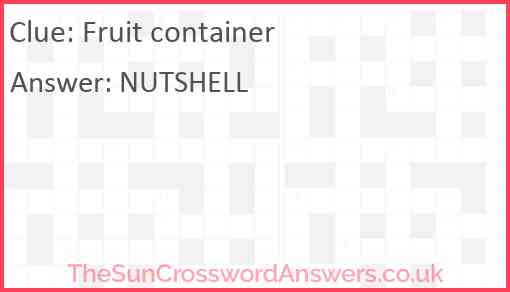 Fruit container is a crossword clue for which we have 1 possible answer and we have spotted 3 times in our database. This crossword clue was last seen on 16 February 2024 in The Sun Coffee Time Crossword puzzle!