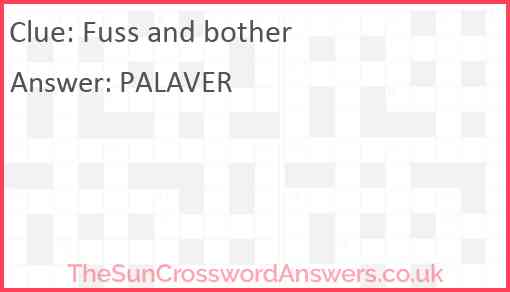 Fuss and bother is a crossword clue for which we have 1 possible answer and we have spotted 7 times in our database. This crossword clue was last seen on 21 May 2025 in The Sun Coffee Time Crossword puzzle!
