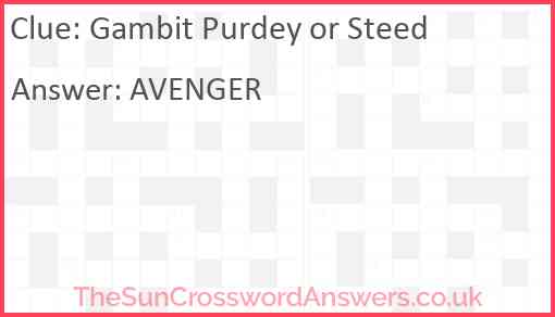 Gambit Purdey or Steed is a crossword clue for which we have 1 possible answer and we have spotted 2 times in our database. This crossword clue was last seen on 02 March 2023 in The Sun Coffee Time Crossword puzzle!