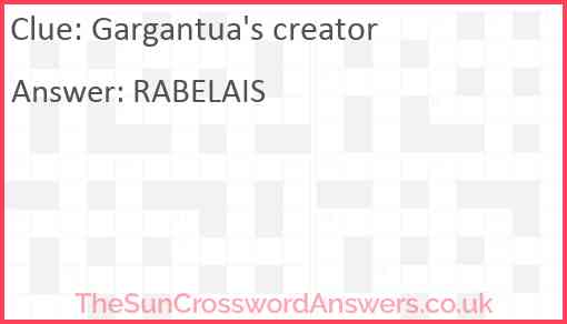 Gargantua's creator is a crossword clue for which we have 1 possible answer and we have spotted 1 times in our database. This crossword clue was last seen on 13 November 2024 in The Sun Coffee Time Crossword puzzle!