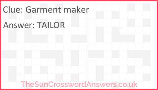 Garment maker is a crossword clue for which we have 1 possible answer and we have spotted 10 times in our database. This crossword clue was last seen on 19 March 2025 in The Sun Coffee Time Crossword puzzle!