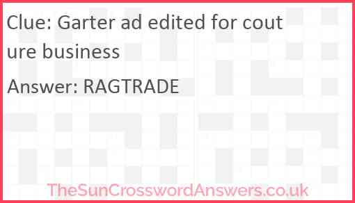 Garter ad edited for couture business is a crossword clue for which we have 1 possible answer and we have spotted 1 times in our database. This crossword clue was last seen on 11 August 2023 in The Sun Cryptic Crossword puzzle!