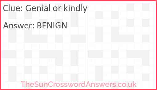 Genial or kindly is a crossword clue for which we have 1 possible answer and we have spotted 2 times in our database. This crossword clue was last seen on 30 November 2022 in The Sun Coffee Time Crossword puzzle!