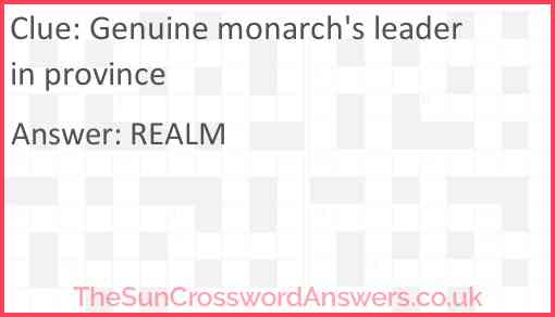 Genuine monarch's leader in province is a crossword clue for which we have 1 possible answer and we have spotted 3 times in our database. This crossword clue was last seen on 14 July 2022 in The Sun Cryptic Crossword puzzle!