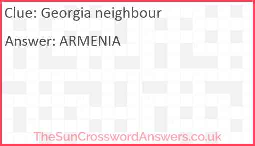 Georgia neighbour is a crossword clue for which we have 1 possible answer and we have spotted 1 times in our database. This crossword clue was last seen on 05 December 2024 in The Sun Coffee Time Crossword puzzle!