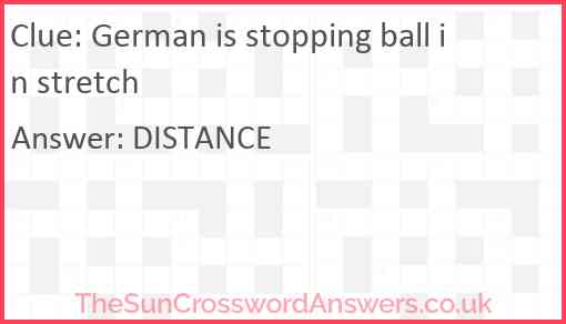 German is stopping ball in stretch is a crossword clue for which we have 1 possible answer and we have spotted 1 times in our database. This crossword clue was last seen on 21 August 2021 in The Sun Cryptic Crossword puzzle!