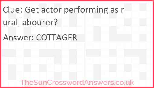 Get actor performing as rural labourer? is a crossword clue for which we have 1 possible answer and we have spotted 1 times in our database. This crossword clue was last seen on 23 April 2024 in The Sun Cryptic Crossword puzzle!