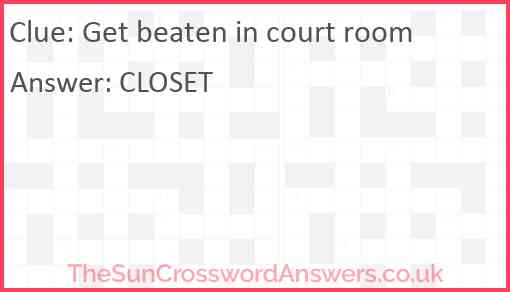Get beaten in court room is a crossword clue for which we have 1 possible answer and we have spotted 2 times in our database. This crossword clue was last seen on 06 April 2025 in The Sun Cryptic Crossword puzzle!