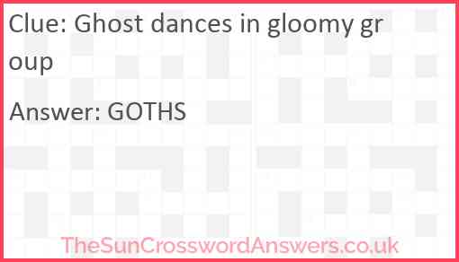 Ghost dances in gloomy group is a crossword clue for which we have 1 possible answer and we have spotted 2 times in our database. This crossword clue was last seen on 11 September 2023 in The Sun Cryptic Crossword puzzle!