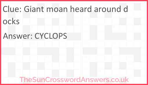 Giant moan heard around docks is a crossword clue for which we have 1 possible answer and we have spotted 2 times in our database. This crossword clue was last seen on 12 February 2024 in The Sun Cryptic Crossword puzzle!