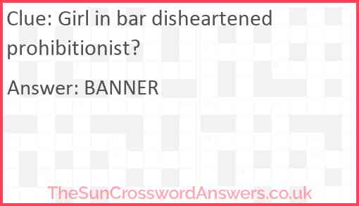 Girl in bar disheartened prohibitionist? is a crossword clue for which we have 1 possible answer and we have spotted 3 times in our database. This crossword clue was last seen on 21 June 2025 in The Sun Cryptic Crossword puzzle!