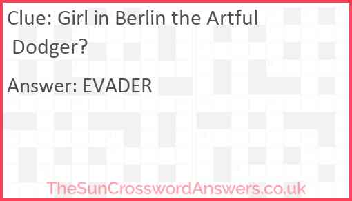 Girl in Berlin the Artful Dodger? is a crossword clue for which we have 1 possible answer and we have spotted 2 times in our database. This crossword clue was last seen on 16 December 2023 in The Sun Cryptic Crossword puzzle!