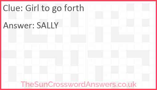 Girl to go forth is a crossword clue for which we have 1 possible answer and we have spotted 3 times in our database. This crossword clue was last seen on 05 July 2024 in The Sun Cryptic Crossword puzzle!