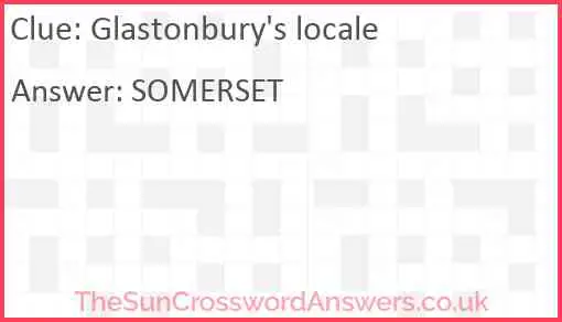 Glastonbury's locale is a crossword clue for which we have 1 possible answer and we have spotted 3 times in our database. This crossword clue was last seen on 28 July 2025 in The Sun Coffee Time Crossword puzzle!