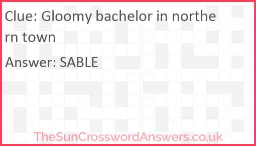 Gloomy bachelor in northern town is a crossword clue for which we have 1 possible answer and we have spotted 2 times in our database. This crossword clue was last seen on 20 November 2022 in The Sun Cryptic Crossword puzzle!
