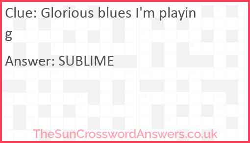 Glorious blues I'm playing is a crossword clue for which we have 1 possible answer and we have spotted 2 times in our database. This crossword clue was last seen on 13 September 2024 in The Sun Cryptic Crossword puzzle!