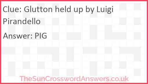 Glutton held up by Luigi Pirandello is a crossword clue for which we have 1 possible answer and we have spotted 2 times in our database. This crossword clue was last seen on 25 May 2025 in The Sun Cryptic Crossword puzzle!