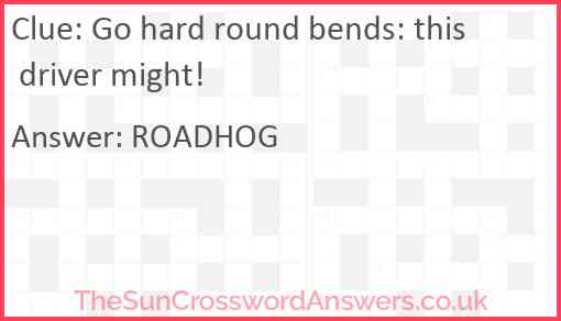 Go hard round bends: this driver might! is a crossword clue for which we have 1 possible answer and we have spotted 1 times in our database. This crossword clue was last seen on 12 January 2023 in The Sun Cryptic Crossword puzzle!