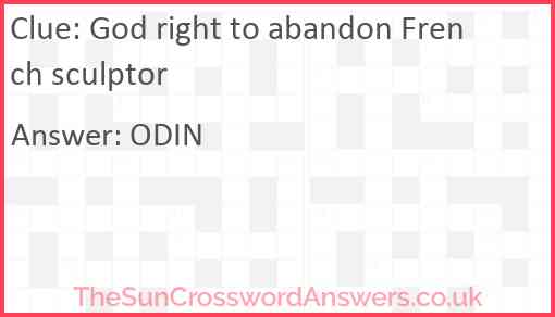 God right to abandon French sculptor is a crossword clue for which we have 1 possible answer and we have spotted 1 times in our database. This crossword clue was last seen on 24 July 2021 in The Sun Cryptic Crossword puzzle!