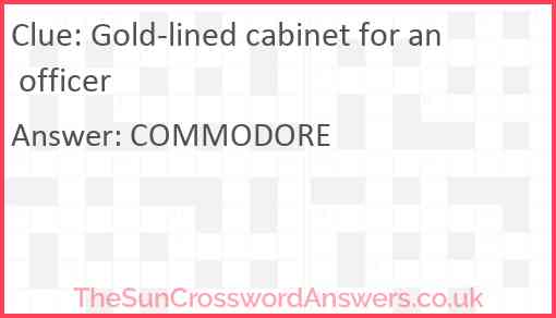 Gold-lined cabinet for an officer is a crossword clue for which we have 1 possible answer and we have spotted 1 times in our database. This crossword clue was last seen on 25 March 2021 in The Sun Cryptic Crossword puzzle!