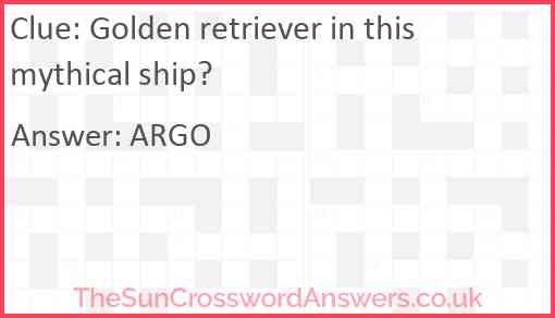 Golden retriever in this mythical ship? is a crossword clue for which we have 1 possible answer and we have spotted 2 times in our database. This crossword clue was last seen on 14 January 2025 in The Sun Cryptic Crossword puzzle!