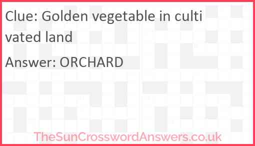 Golden vegetable in cultivated land is a crossword clue for which we have 1 possible answer and we have spotted 2 times in our database. This crossword clue was last seen on 23 December 2021 in The Sun Cryptic Crossword puzzle!