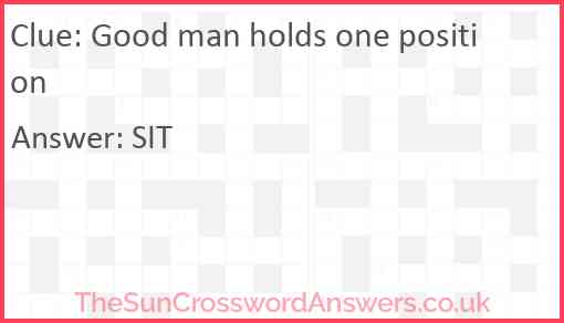 Good man holds one position is a crossword clue for which we have 1 possible answer and we have spotted 2 times in our database. This crossword clue was last seen on 28 October 2023 in The Sun Cryptic Crossword puzzle!