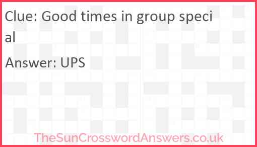 Good times in group special is a crossword clue for which we have 1 possible answer and we have spotted 2 times in our database. This crossword clue was last seen on 29 October 2023 in The Sun Cryptic Crossword puzzle!