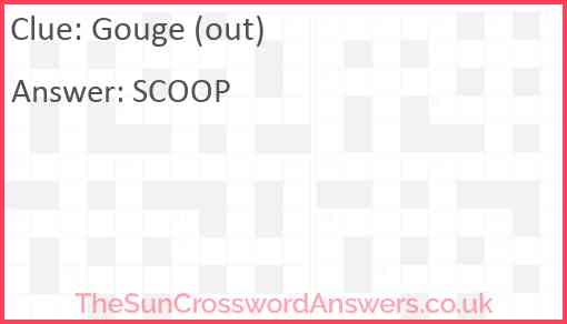 Gouge (out) is a crossword clue for which we have 1 possible answer and we have spotted 2 times in our database. This crossword clue was last seen on 21 July 2025 in The Sun Coffee Time Crossword puzzle!