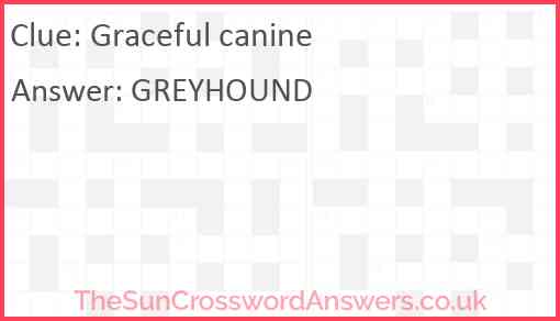 Graceful canine is a crossword clue for which we have 1 possible answer and we have spotted 4 times in our database. This crossword clue was last seen on 19 May 2024 in The Sun Coffee Time Crossword puzzle!