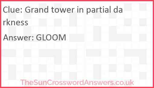 Grand tower in partial darkness is a crossword clue for which we have 1 possible answer and we have spotted 1 times in our database. This crossword clue was last seen on 26 April 2021 in The Sun Cryptic Crossword puzzle!