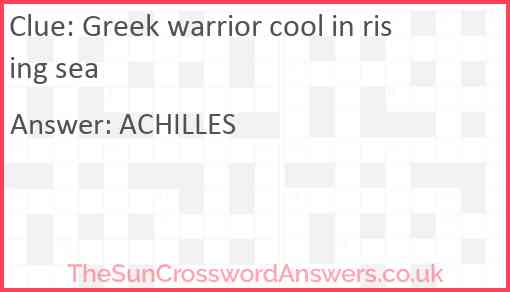 Greek warrior cool in rising sea is a crossword clue for which we have 1 possible answer and we have spotted 2 times in our database. This crossword clue was last seen on 30 November 2022 in The Sun Cryptic Crossword puzzle!
