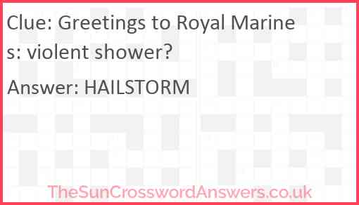 Greetings to Royal Marines: violent shower? is a crossword clue for which we have 1 possible answer and we have spotted 2 times in our database. This crossword clue was last seen on 06 June 2024 in The Sun Cryptic Crossword puzzle!