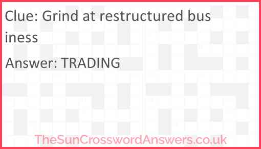 Grind at restructured business is a crossword clue for which we have 1 possible answer and we have spotted 3 times in our database. This crossword clue was last seen on 23 March 2024 in The Sun Cryptic Crossword puzzle!