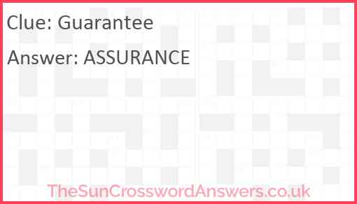 Guarantee is a crossword clue for which we have 1 possible answer and we have spotted 1 times in our database. This crossword clue was last seen on 13 September 2024 in The Sun Coffee Time Crossword puzzle!