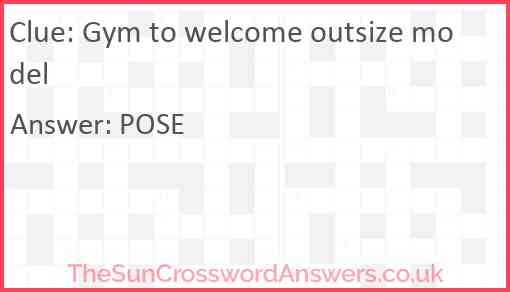 Gym to welcome outsize model is a crossword clue for which we have 1 possible answer and we have spotted 2 times in our database. This crossword clue was last seen on 10 December 2023 in The Sun Cryptic Crossword puzzle!